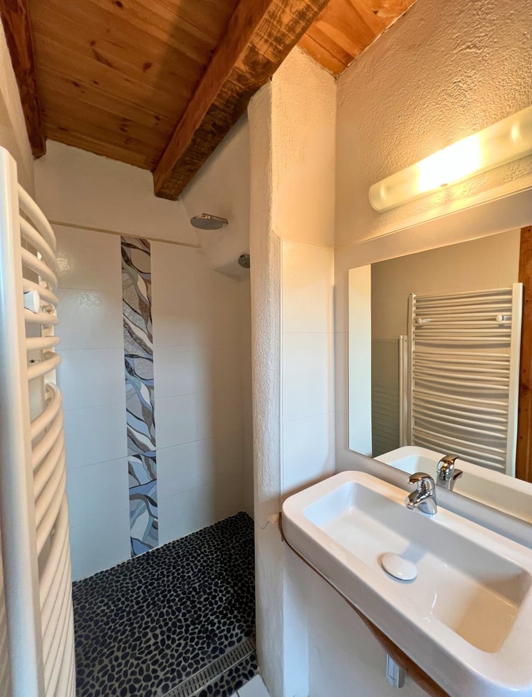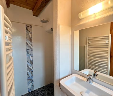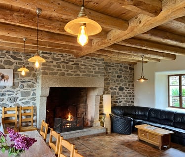 Notre chambre d’une surface de 24m2 est équipée d’un lit en 160cm, d’une télé écran plat, d’un coin salon en mezzanine avec charpente apparente.